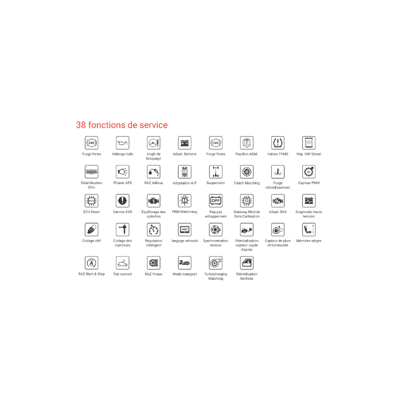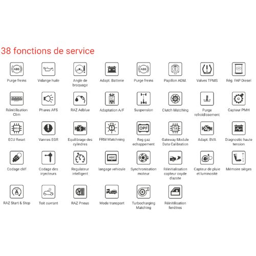 * Fonctionnalité permettant le déverrouillage des fonctions OBD cybersécurisées par le constructeur, tout en restant dans les capacités de l'outil. ✓ = Option disponible, non incluse, proposée en supplément.