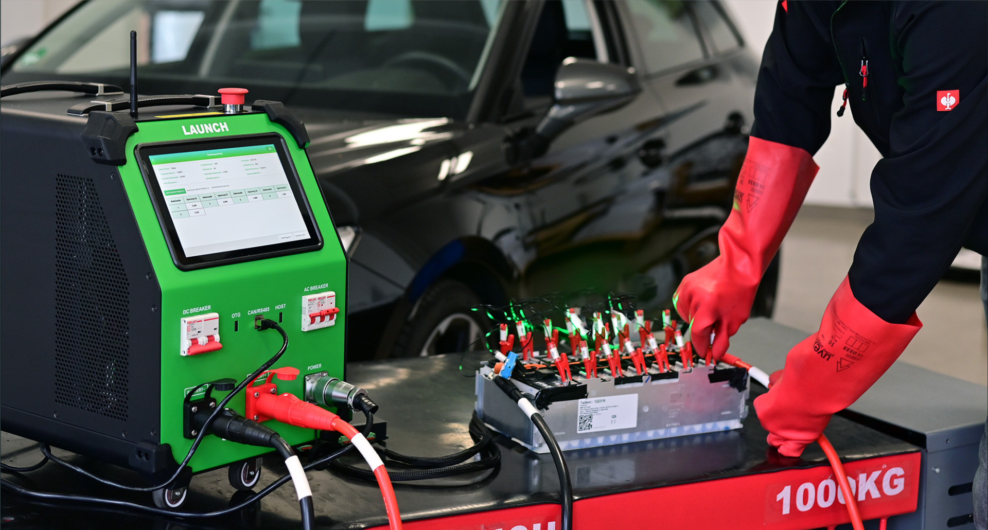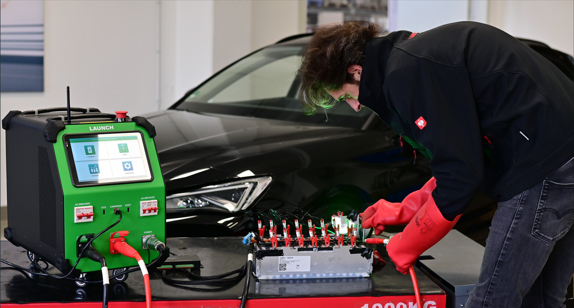 La batterie HT est ouverte. L'ELP 400 est utilisé pour décharger le module de cellules afin de pouvoir travailler en toute sécurité et hors tension